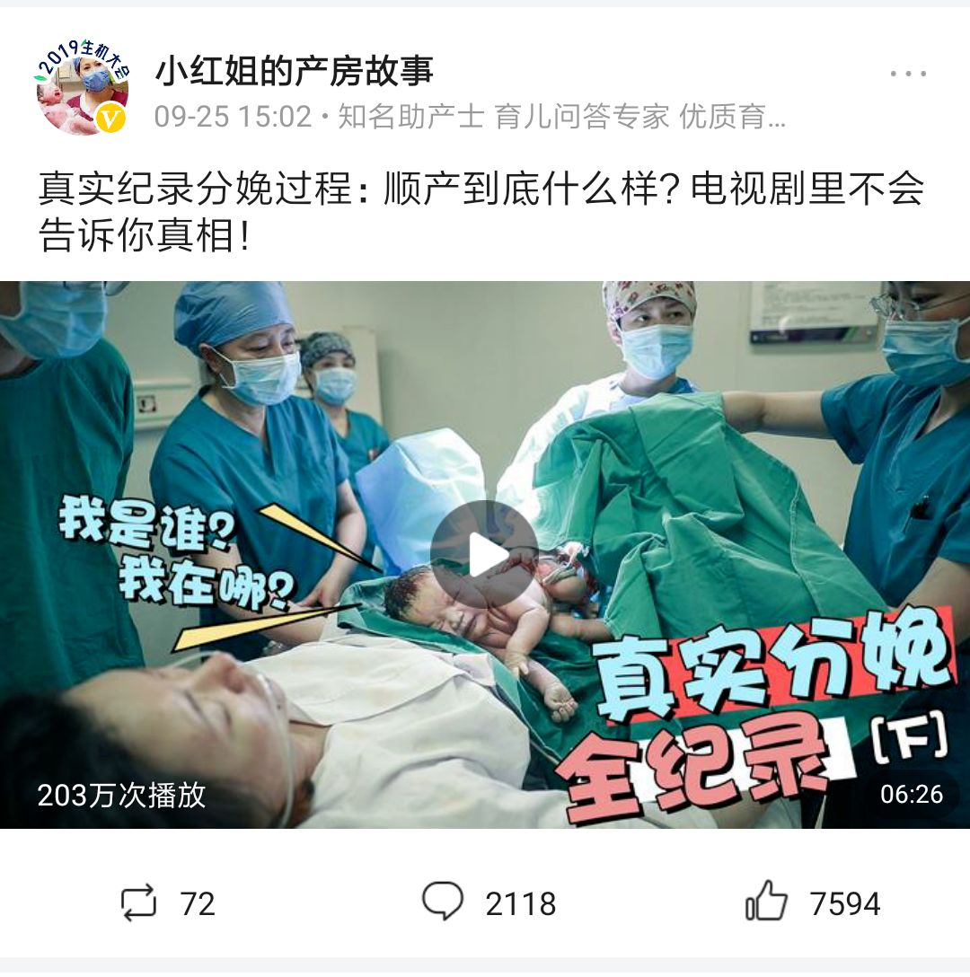 小红姐当了27年的助产士,接生了2万多个孩子,但运营不过五年的“小红姐的产房故事”却可能已经帮助超过200万甚至2000万人。