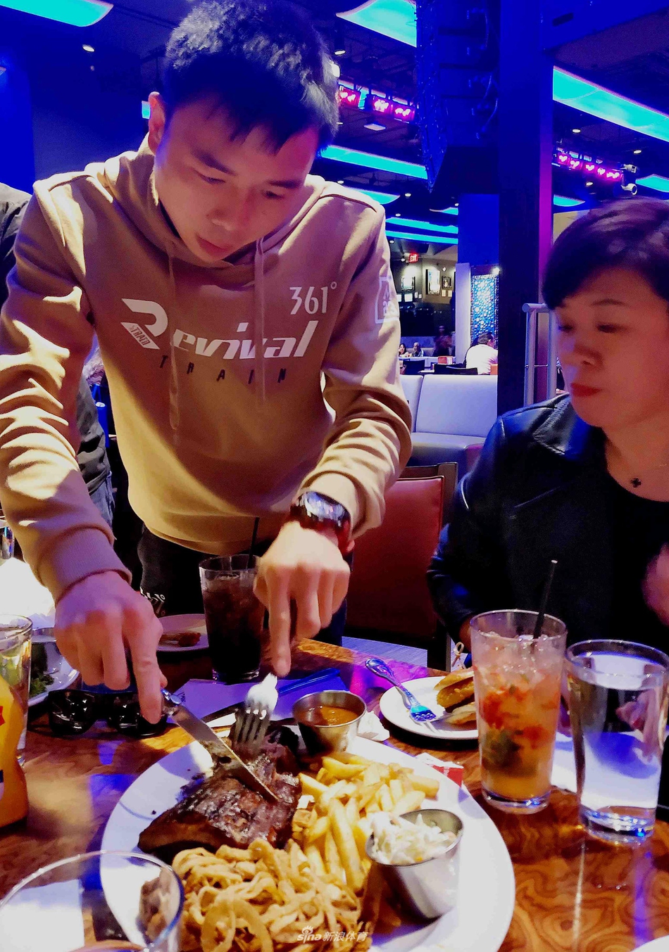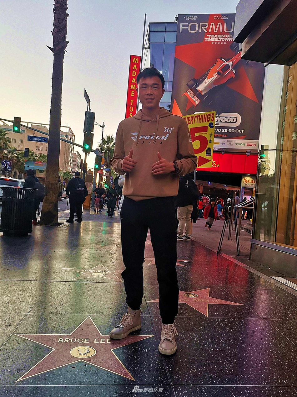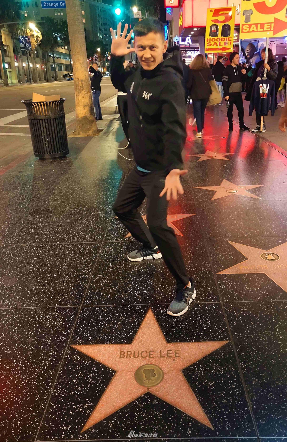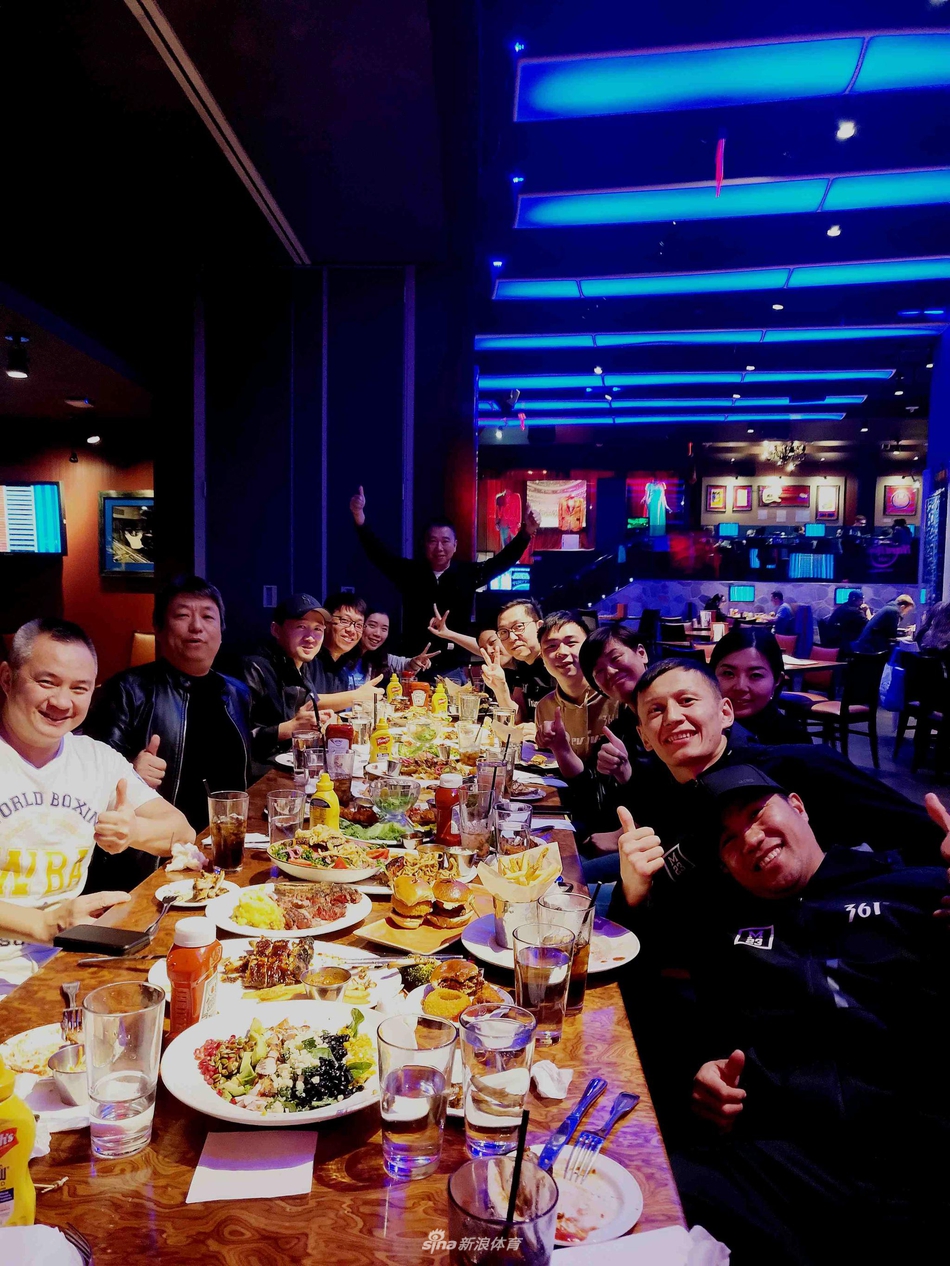 美国西部时间2019年11月24日,刚刚在加利福尼亚卫冕了WBA世界125磅金腰带的徐灿和团队一起移动到了洛杉矶,夜宿好莱坞湖附近的山庄,并前往星光大道进行了参观,在李小龙的星前留影。晚上,拳威四海公司董事长赵军女士请客,犒劳这次远征美国的整个团队成员。徐灿还少见地放开肚子,奖励自己吃了冰淇淋和喝了可乐。(周超/摄)