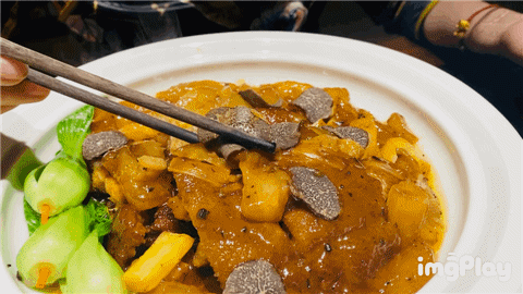 压轴来了,黑松露海参蹄筋扣肘,里面满满的都是珍贵的食材,黑松露的香、海参的鲜、蹄筋的韧、肘子的香而不腻,四种口感结合在一起,实在好吃。