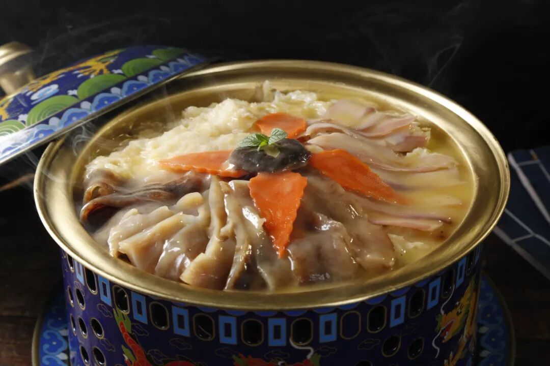 扒三鲜,国宴级别的传统豫菜。海参脆嫩、广肚爽滑、汤汁鲜浓却不粘腻。广肚鱿鱼和厨师都大有来头儿。鲜字当头,选他它有里有面儿!!这道硬(eng)菜,会吃的人终会偏爱。