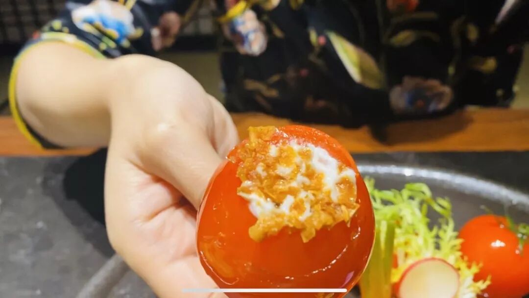 接着第二道:妙酱串串红,这是内有乾坤的一道菜,它不是番茄更不是圣女果,它是正宗的串串红,这道菜从里到外都饱含满满的匠心,就连光亮的外壳都是秘制的,吃到嘴里你才能体会到它为什么能经过岁月的筛选留到了现在。