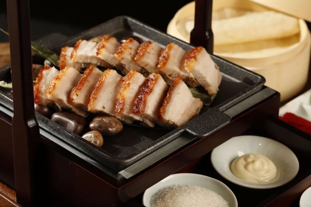 紫酥肉,河南炸五花肉的口味赛过北京烤鸭,不信来尝。老祖宗留下的菜谱,以今年入冬轻奢品---猪肋骨为主料。经过主厨的煮、腌、蒸和反复炸制而成,外焦里嫩,棕黄发紫酥脆,肥而不腻,一口下去便动了心。配以葱段,佐以甜面酱,更是人间至味。赵王的选择,果然名不虚传。