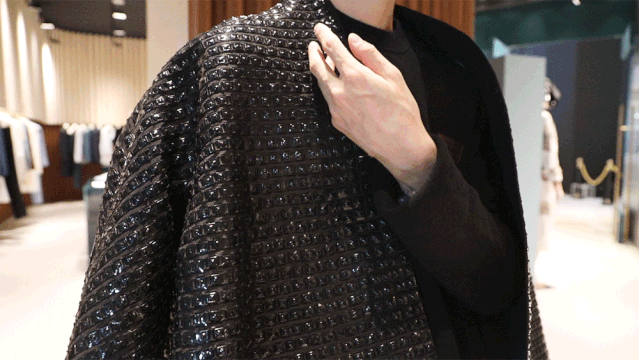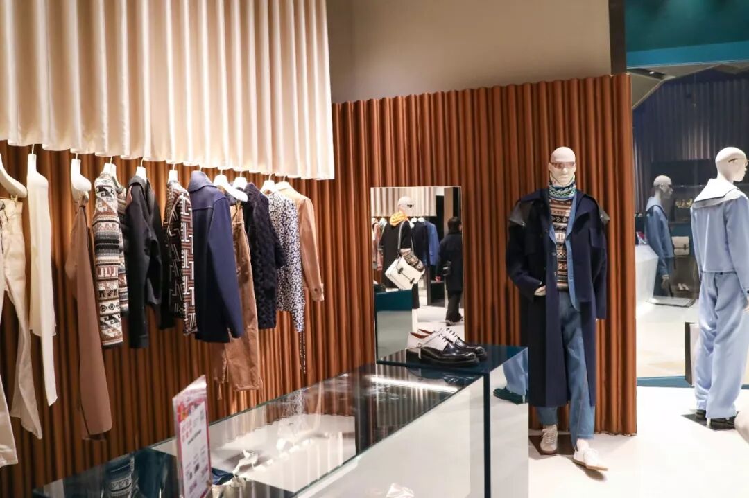 很难不被这家店所吸引,ON/OFF打造了一个充满流动时尚的未来感空间,高矮不一的半弧形墙壁,与衣服剪裁融为一体,仿佛是“量体裁衣”的专属定制一般。