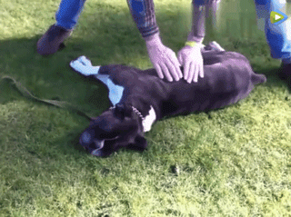 狗狗的恢复能力很强,很快sugar便能够站立起来,这多亏了这位路人大叔啊!