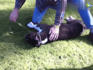这时一位路过的大叔看到,赶忙过来施行CPR急救!大叔先将主人安抚到一旁,然后开始给狗狗做心肺复苏。
